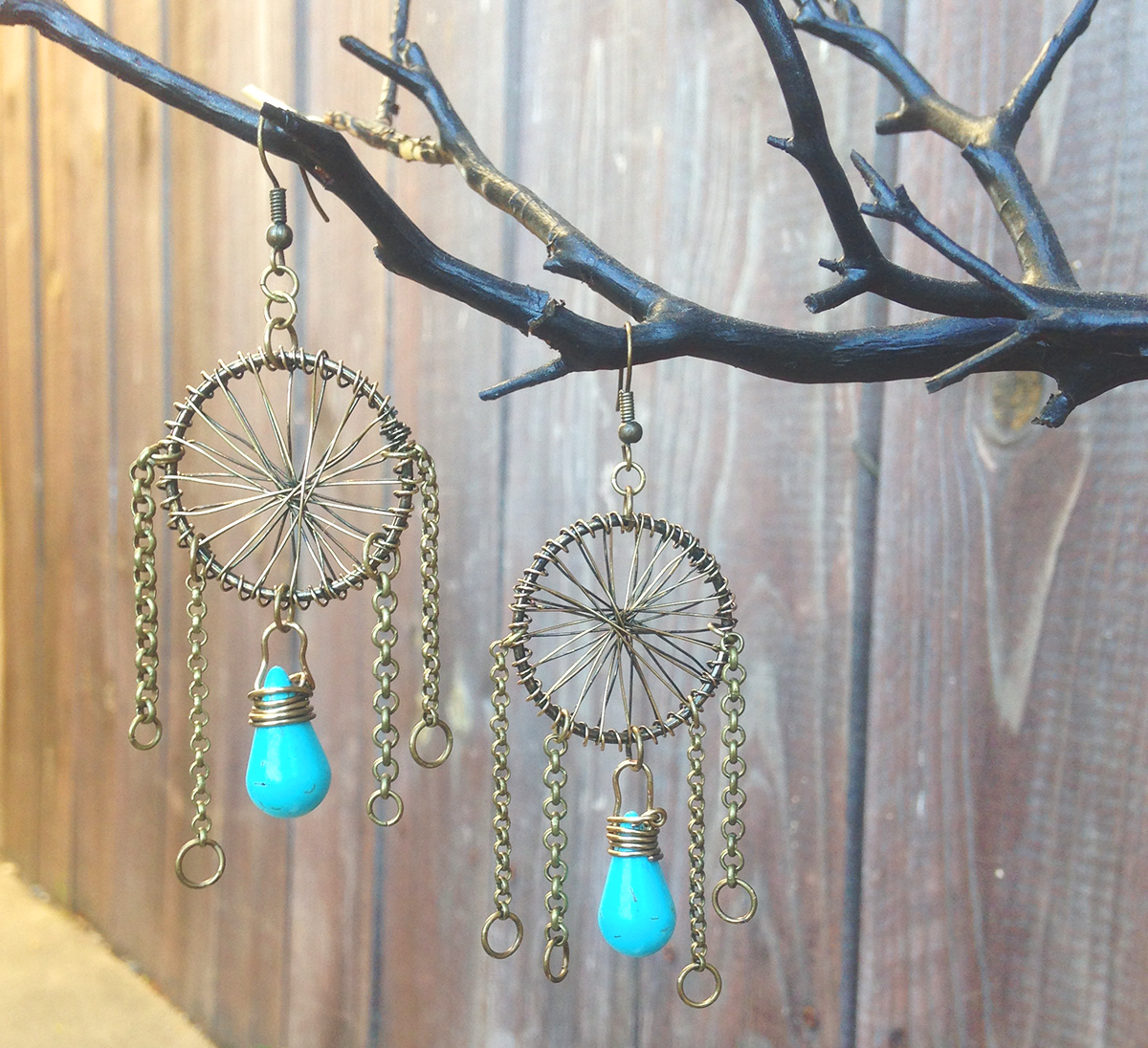 Antique Brass finish Dream Catcher with Turquoise Tear Drop flow so well together here...