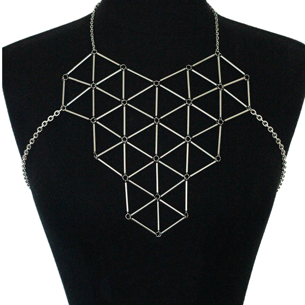 This piece is extremely feminine yet powerful with the repeated and overlapping hexagon shape throughout.